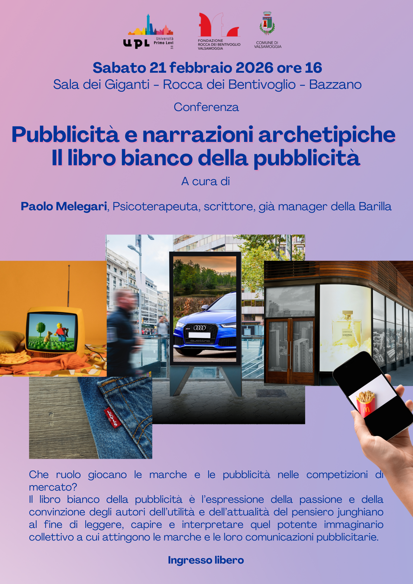A guidarci in questo percorso sarà Paolo Melegari, psicoterapeuta e scrittore, già manager della Barilla, che proporrà una lettura originale della pubblicità alla luce del pensiero junghiano: un’occasione per leggere, capire e interpretare i messaggi che ogni giorno ci parlano — spesso senza che ce ne accorgiamo.