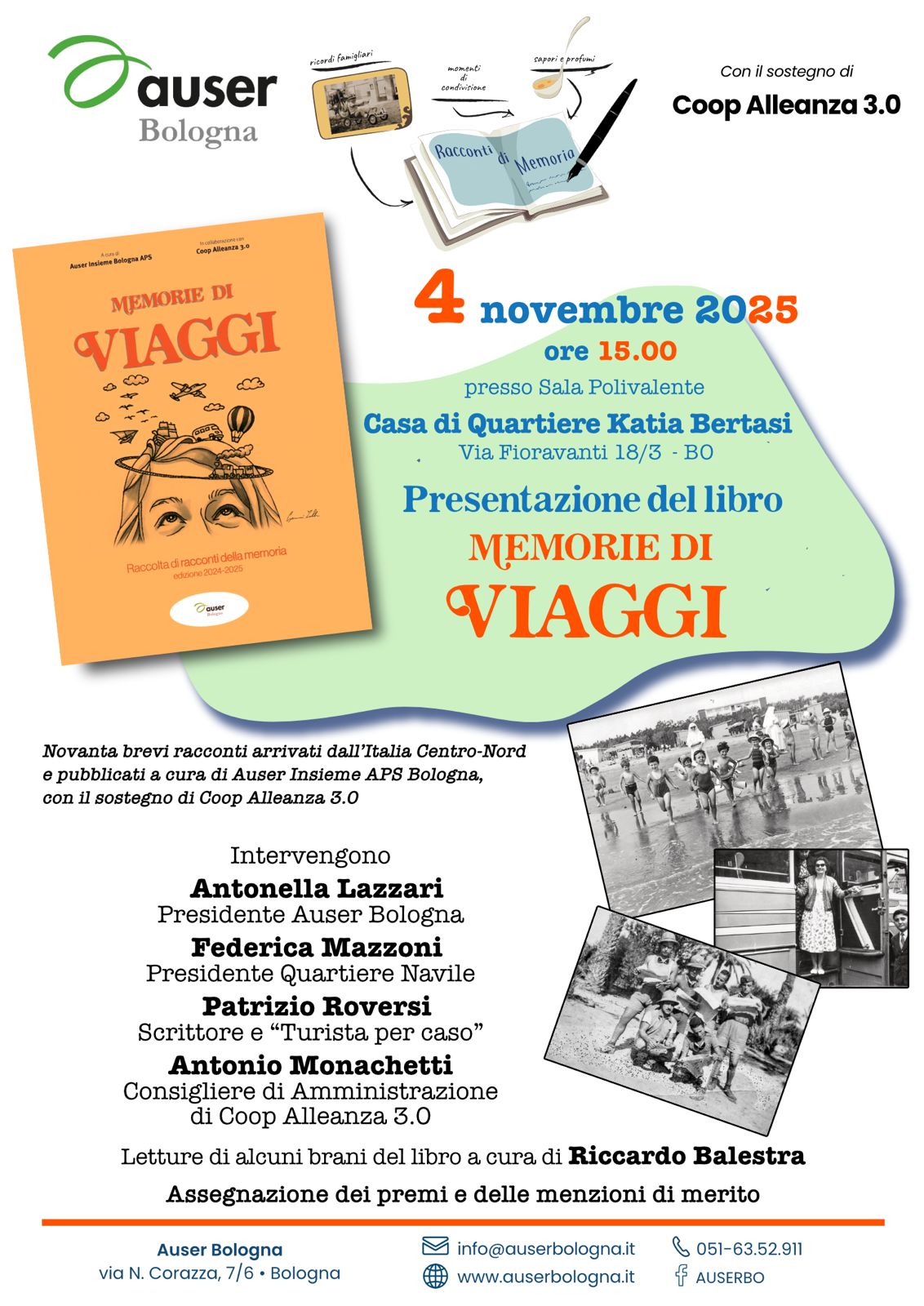 Riceviamo e con piacere vi segnaliamo la presentazione del libro ‘Memorie di viaggi’, curata da Auser Insieme APS Bologna.