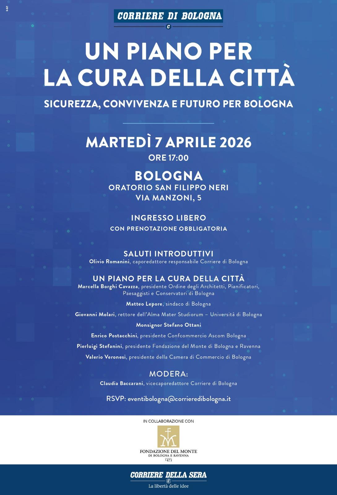 L’evento è promosso dal Corriere di Bologna in collaborazione con Fondazione del Monte di Bologna e Ravenna.