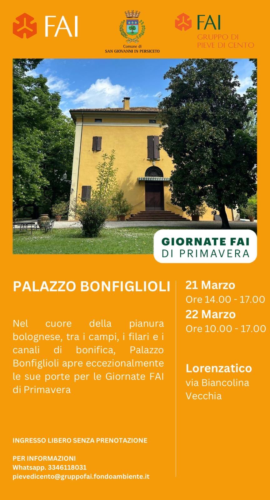 Al termine del percorso di riconoscimento e valorizzazione, uno dei luoghi più significativi del nostro territorio, Palazzo Bonfiglioli, è stato ufficialmente inserito nel programma nazionale delle Giornate FAI di Primavera, che si svolgeranno nelle giornate di sabato 21 e domenica 22 marzo 2026.